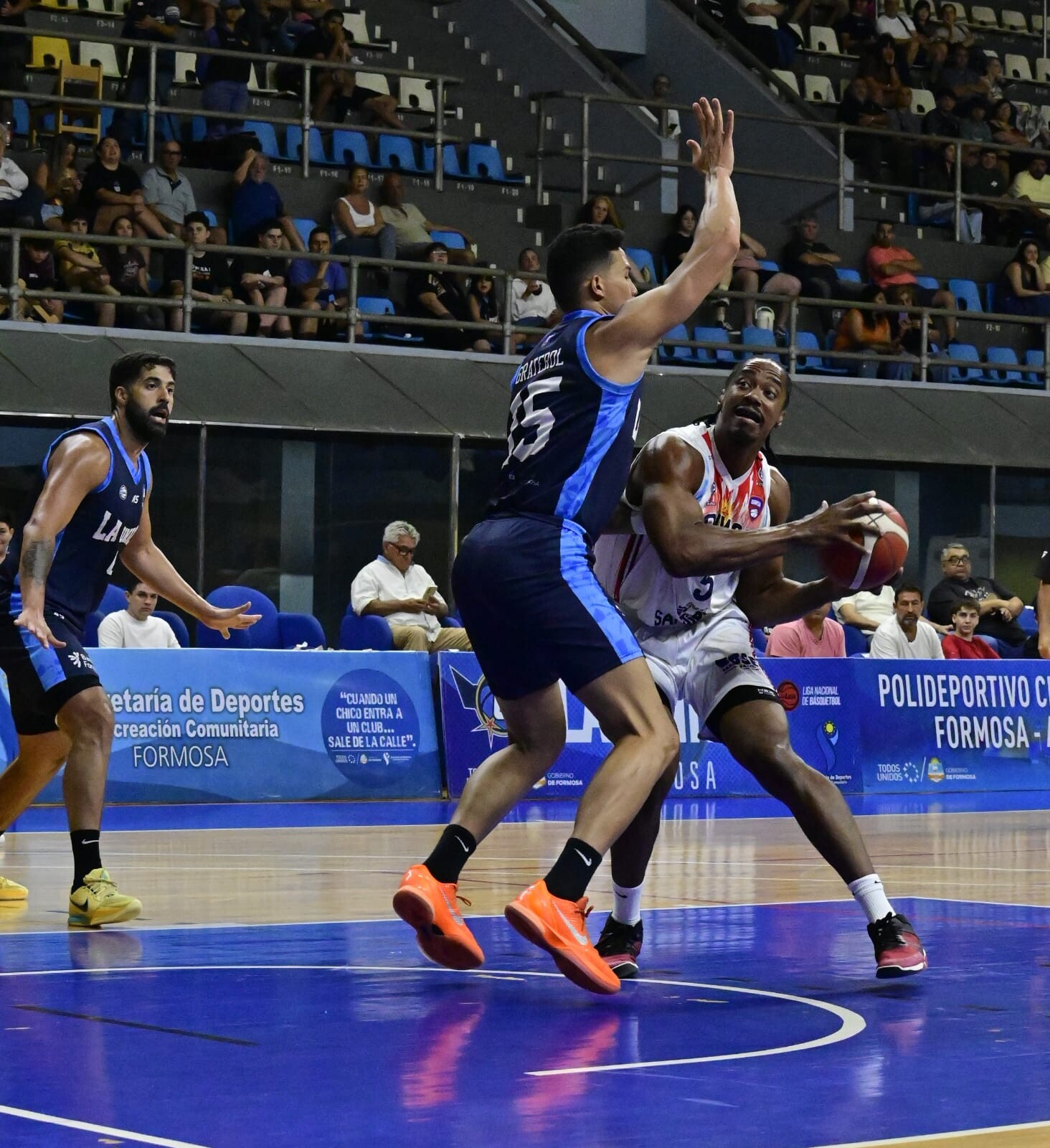 El banco formoseño dió réditos con Alorda mientras que cinco puntos de Lema mantenían la paridad en el tanteador. La dupla Spano – Machuca adelantó por ocho a La Unión, pero la Fusión contestó con Figueredo desde el perímetro junto a un siempre rendidor Lema. Rumbo al entretiempo Spano se encargó de poner al frente al dueño de casa 45 a 41.