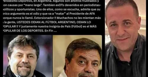 Toviggino señaló que Caruso “admite que su único argumento es el odio” y hasta llegó a decir que “va a ‘matar’ al presidente de la AFA porque nunca lo llamó”. Siguiendo esta línea, escribió: “¡Extorsionador! Muchachos, no le mientan más a la gente”. Y afirmó que “odian al fútbol argentino, odian lo popular”, señalando que el fútbol, emblema nacional, es el “más popular de los deportes”.